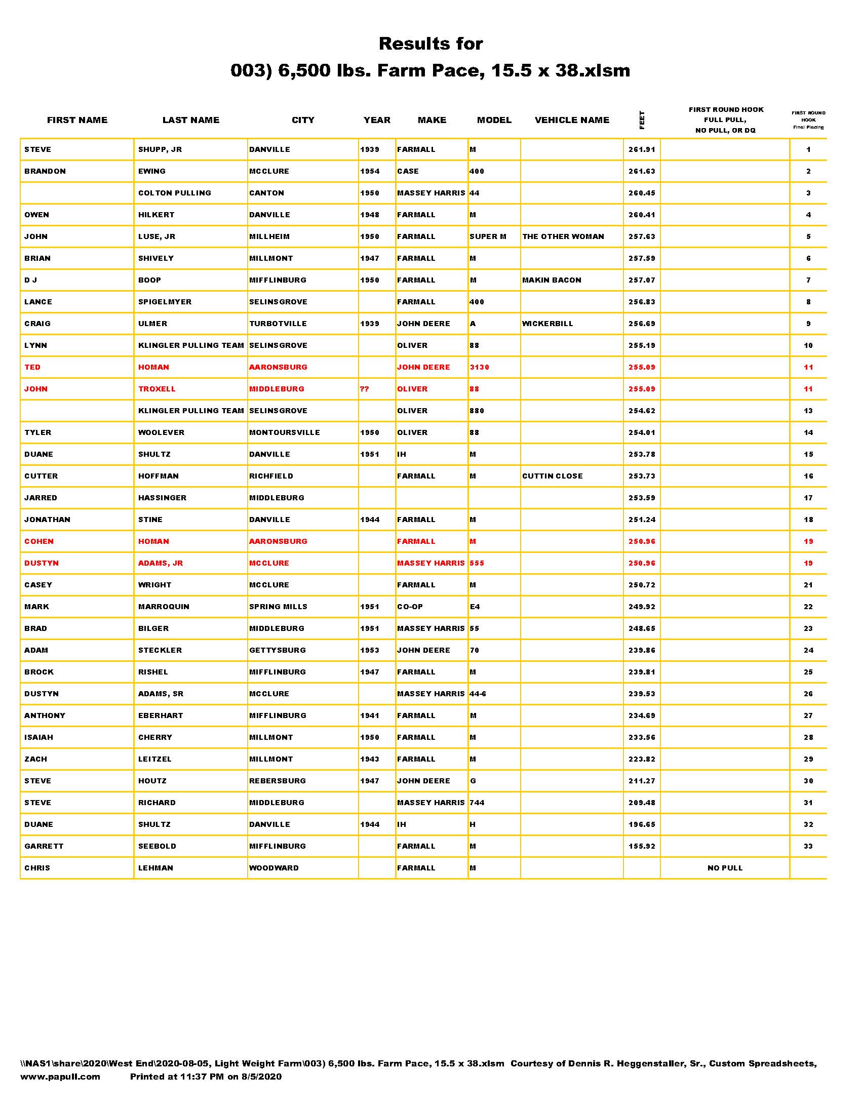 Light Farm Stock Pace Pull, August 5, 2020